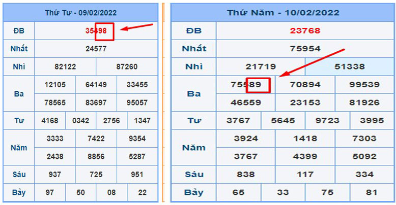 - Ngày 09/02/2022 có giải đặc biệt về: 35498 >> 98 là đề ngày hôm đó