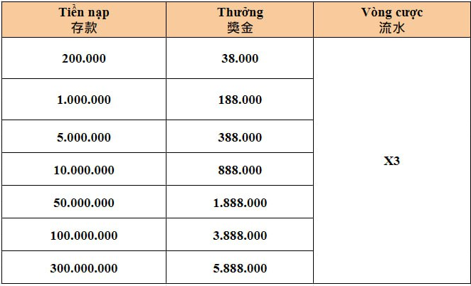 ** Lưu ý : Thành viên từ cấp bậc VIP 2 trở lên thì mới tham gia được khuyến mãi này.