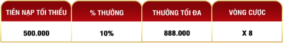 - Ví dụ bạn nạp lần thứ ba 500,000 VND , tiền thưởng của bạn là 50,000 VND.