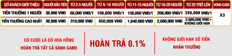 4. Ưu đãi hoa hồng 0,1% dựa trên doanh thu cược hợp lệ của người được giới thiệu, không giới hạn tiền hoa hồng mỗi ngày.